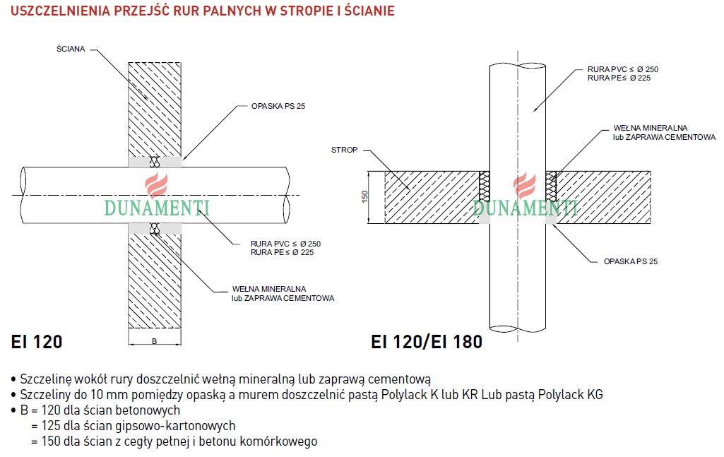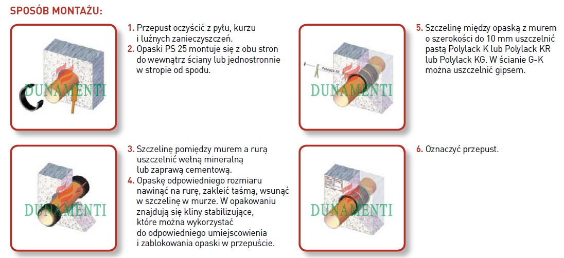 The PS25 fireproof band is intended for fire protection of combustible pipes up to 250 mm in diameter.