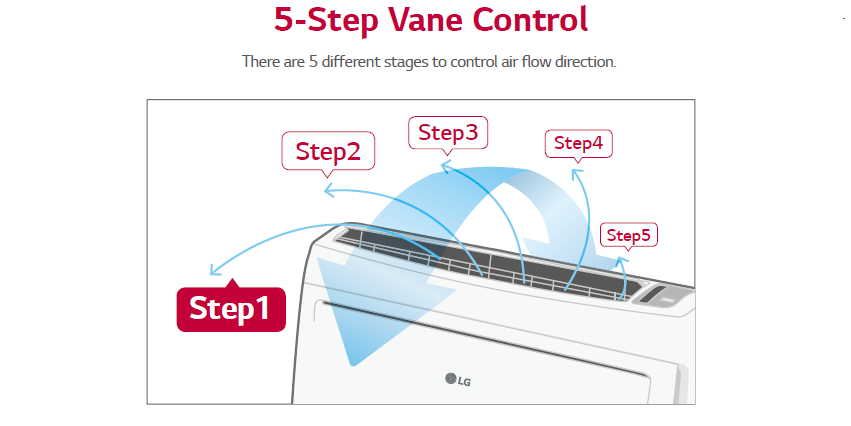 A wide, 5-degree vertical airflow control allows precise settings.