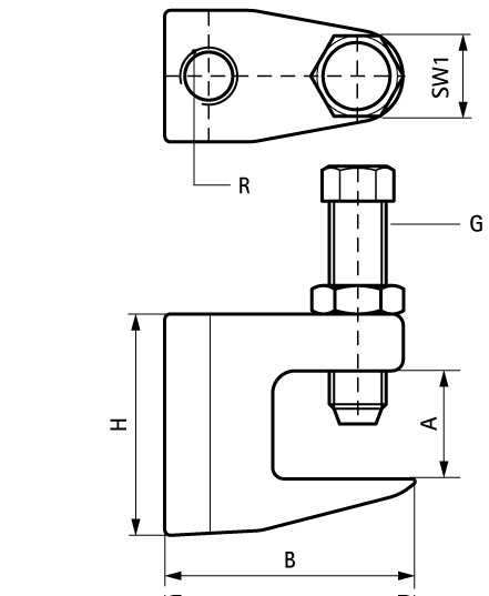 | Part No. | Code | A(mm) | R | G | B(mm) | H(mm) | SW1(mm) | Fa,z(N) | FM | UL | VdS | Pack 1 |
