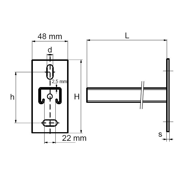 | Part No. | L | H(mm) | h(mm) | s(mm) | d1(mm) | k(mm) | From rail | Pack 1 |