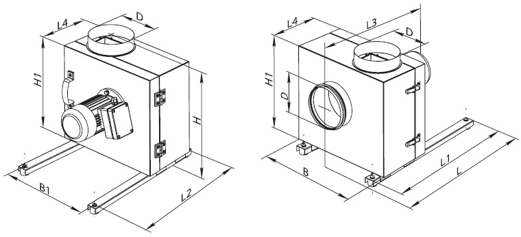 | ØD | B | B1 | H | H1 | L | L1 | L2 | L3 | L4 | ||