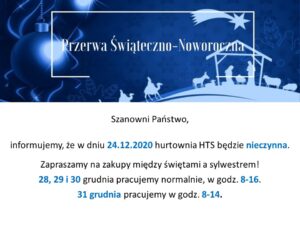 informujemy, że w dniu 24.12.2020 hurtownia HTS będzie nieczynna.